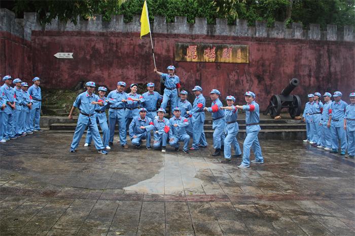 在紅七軍廣場,我們開展了拓展培訓比武。四個縱隊分別選出自己的隊長和政委,在規(guī)定的時間內(nèi)確定隊名、隊徽、口號、隊形并進行操練。經(jīng)過一番謀劃,雄鷹隊、陽光隊、飛鷹隊、鐵軍隊騰空出世。接下來便是登場亮相,首先上場的是鐵軍隊,在一番隊形變換后,喊出了“城投鐵軍,永奪冠軍”的口號震撼大地。