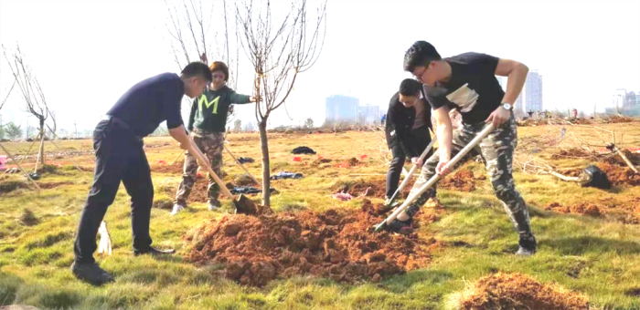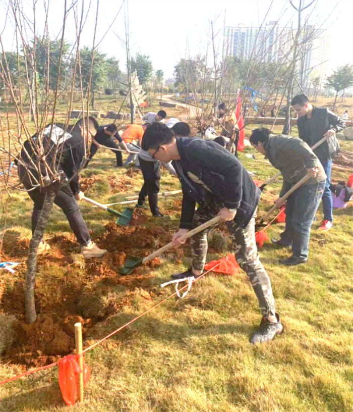 在活動(dòng)負(fù)責(zé)人進(jìn)行任務(wù)布置、流程講解后,城投集團(tuán)團(tuán)委的青年們便開(kāi)始了有序的植樹(shù)活動(dòng)。大家分工明確、齊心協(xié)力,揮舞鐵鍬翻新土,扶植新苗列成行,呈現(xiàn)出一派熱火朝天的勞動(dòng)場(chǎng)面。