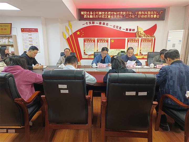 發(fā)布時(shí)間:2023-03-25 作者:圖文/各子公司 來(lái)源:本站原創(chuàng) 審核:葉茂桃 鄧永劍為深入貫徹市委決策部署,3月9日,城投集團(tuán)召開(kāi)解放思想對(duì)標(biāo)對(duì)表提升年、干部作風(fēng)強(qiáng)化年、廣西東融先行示范區(qū)建設(shè)攻堅(jiān)年“三個(gè)年”行動(dòng)動(dòng)員部署會(huì)精神。3月23日,集團(tuán)黨委召開(kāi)擴(kuò)大會(huì)議,傳達(dá)學(xué)習(xí)全國(guó)“兩會(huì)”精神,并對(duì)集團(tuán)開(kāi)展“三個(gè)年”行動(dòng)進(jìn)行再部署,對(duì)查擺問(wèn)題再剖析,確保取得實(shí)效。集團(tuán)召開(kāi)“三個(gè)年”行動(dòng)動(dòng)員部署會(huì)后,各子公司相繼召開(kāi)會(huì)議,切實(shí)將開(kāi)展“三個(gè)年”行動(dòng)與學(xué)習(xí)貫徹“兩會(huì)”精神結(jié)合起來(lái),與貫徹自治區(qū)黨委重實(shí)效、強(qiáng)實(shí)干、抓落實(shí)要求結(jié)合起來(lái),與市委“實(shí)干干實(shí)、快干干好”工作理念結(jié)合起來(lái),促進(jìn)各項(xiàng)工作任務(wù)高質(zhì)高效完成。