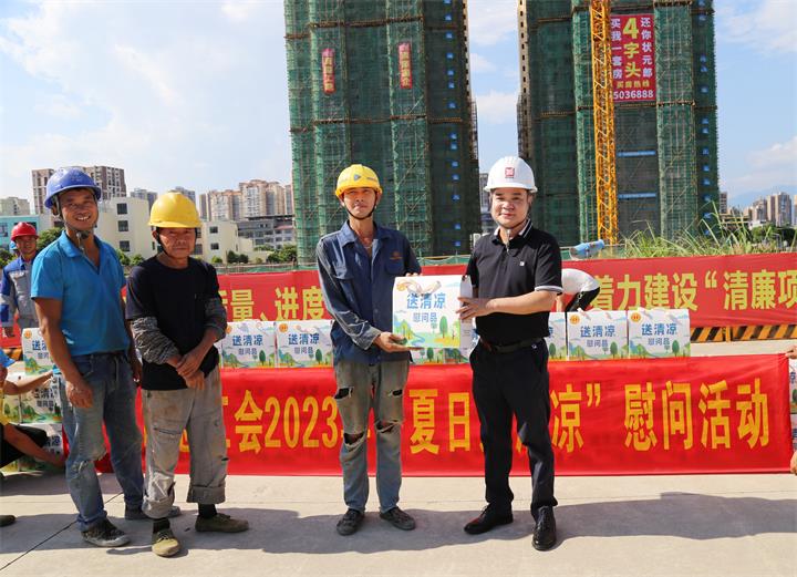 發(fā)布時間:2023-07-28 作者:圖/義潔 文/胡博文 來源:本站原創(chuàng) 審核:葉茂桃 吳姍炎炎夏日,高溫酷暑。為做好防暑降溫工作,7月28日,市總工會組織慰問組到城投集團(tuán)實(shí)施的平安居棚改項(xiàng)目開展“送清涼”慰問活動,為高溫下堅(jiān)守一線工作崗位的職工送去組織的關(guān)懷和夏日的清涼。集團(tuán)黨委委員、副總經(jīng)理柳國忠,集團(tuán)工會副主席、總經(jīng)理助理謝慈政參加慰問。