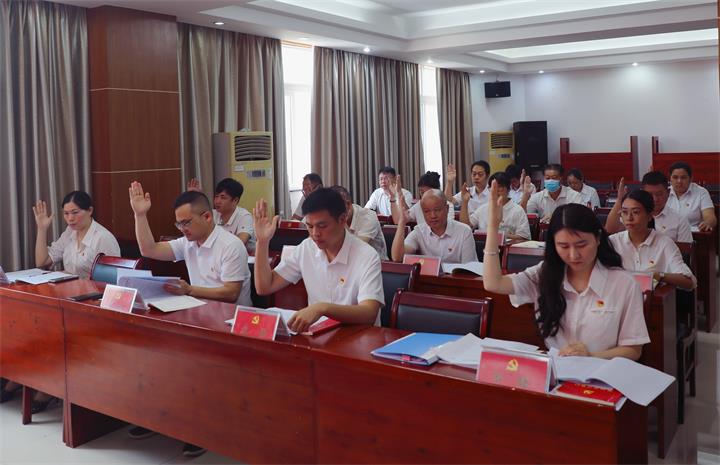 會(huì)議在激昂的國(guó)歌中拉開(kāi)序幕,全體黨員莊重肅立,齊唱《中華人民共和國(guó)國(guó)歌》。