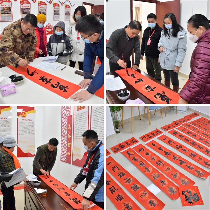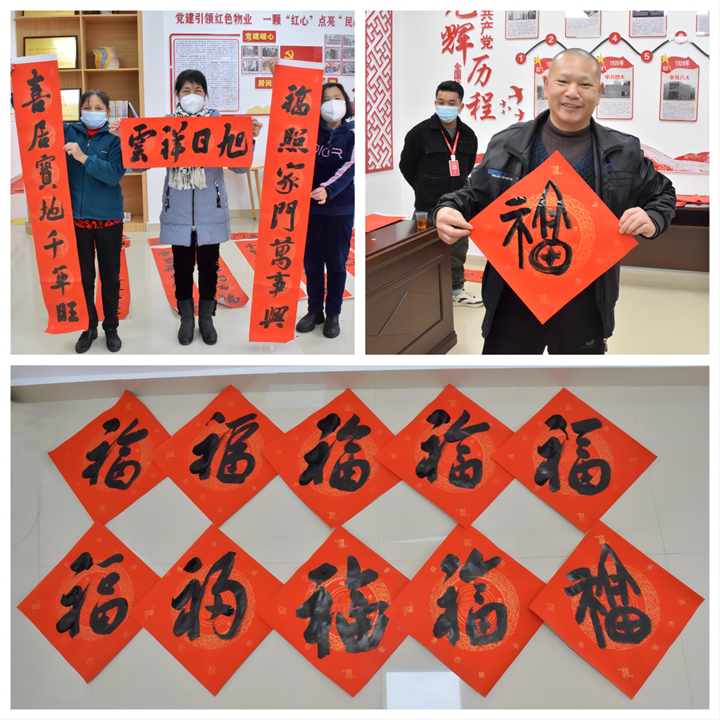 春節(jié)將至,為豐富小區(qū)業(yè)主文化生活,營造歡樂祥和的節(jié)日氛圍,1月16日上午,運營公司黨支部在賀州市城東新區(qū)公租房紅色物業(yè)示范點開展“紅色物業(yè)送春聯(lián) 墨香四溢暖人心”活動?;顒友埩硕嗝形穆?lián)、廣西書法家協(xié)會會員等優(yōu)秀書法家走進小區(qū),將紅紅火火和美好祝福送給廣大業(yè)主和群眾,用實際行動營造和諧、溫馨的新年氛圍。