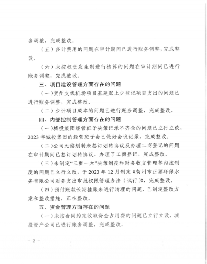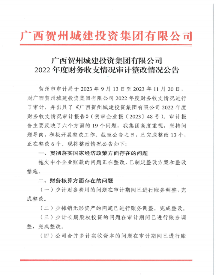 下一篇:賀州市城市品質(zhì)提升改造工程財(cái)務(wù)收支及項(xiàng)目執(zhí)行情況審計(jì)整改情況公告