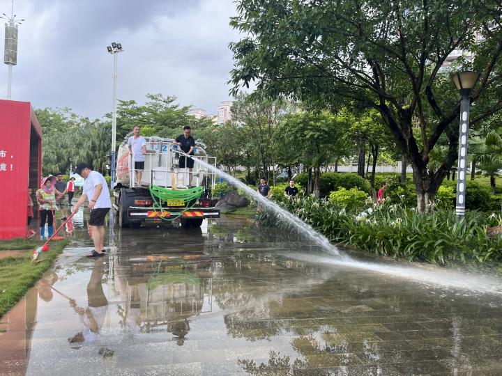 本次清理行動(dòng)分兩組進(jìn)行,一是加大路面保潔作業(yè)力度,對(duì)散落的樹(shù)枝、落葉及洪水?dāng)y帶上來(lái)的雜物進(jìn)行清理。二是人機(jī)結(jié)合,采取“沖洗+洗掃”聯(lián)合作業(yè)方式,對(duì)林蔭小道路面、公園廣場(chǎng)等地進(jìn)行深度沖洗,徹底消除洪水沉積淤泥。